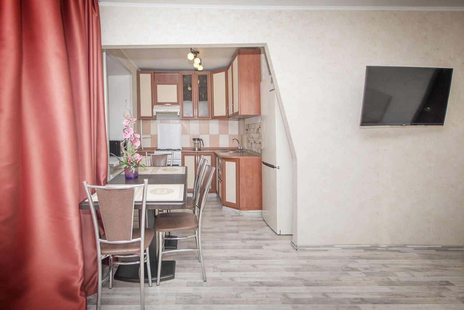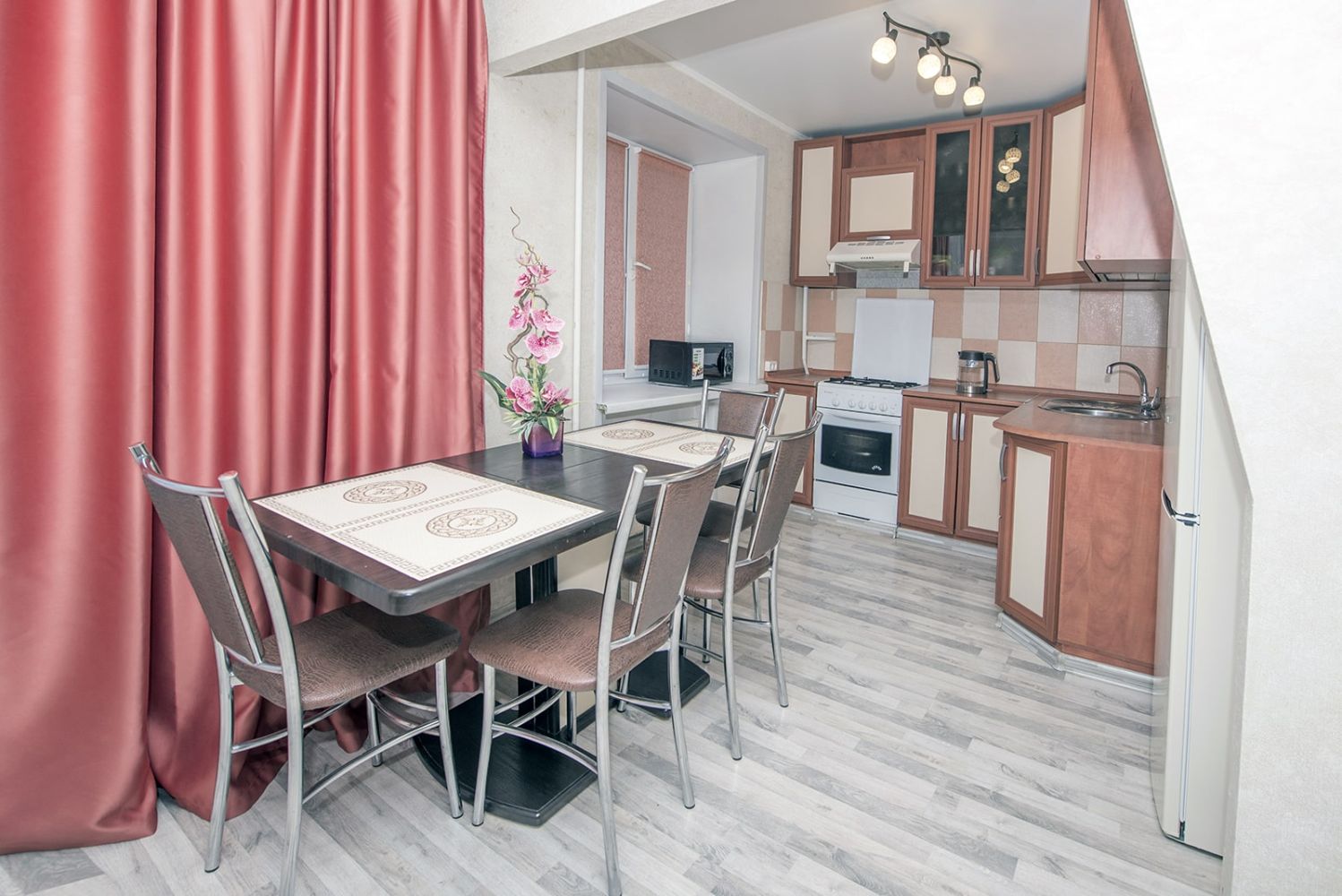 - на кухне посуда и столовые принадлежности все для комфортного проживания.